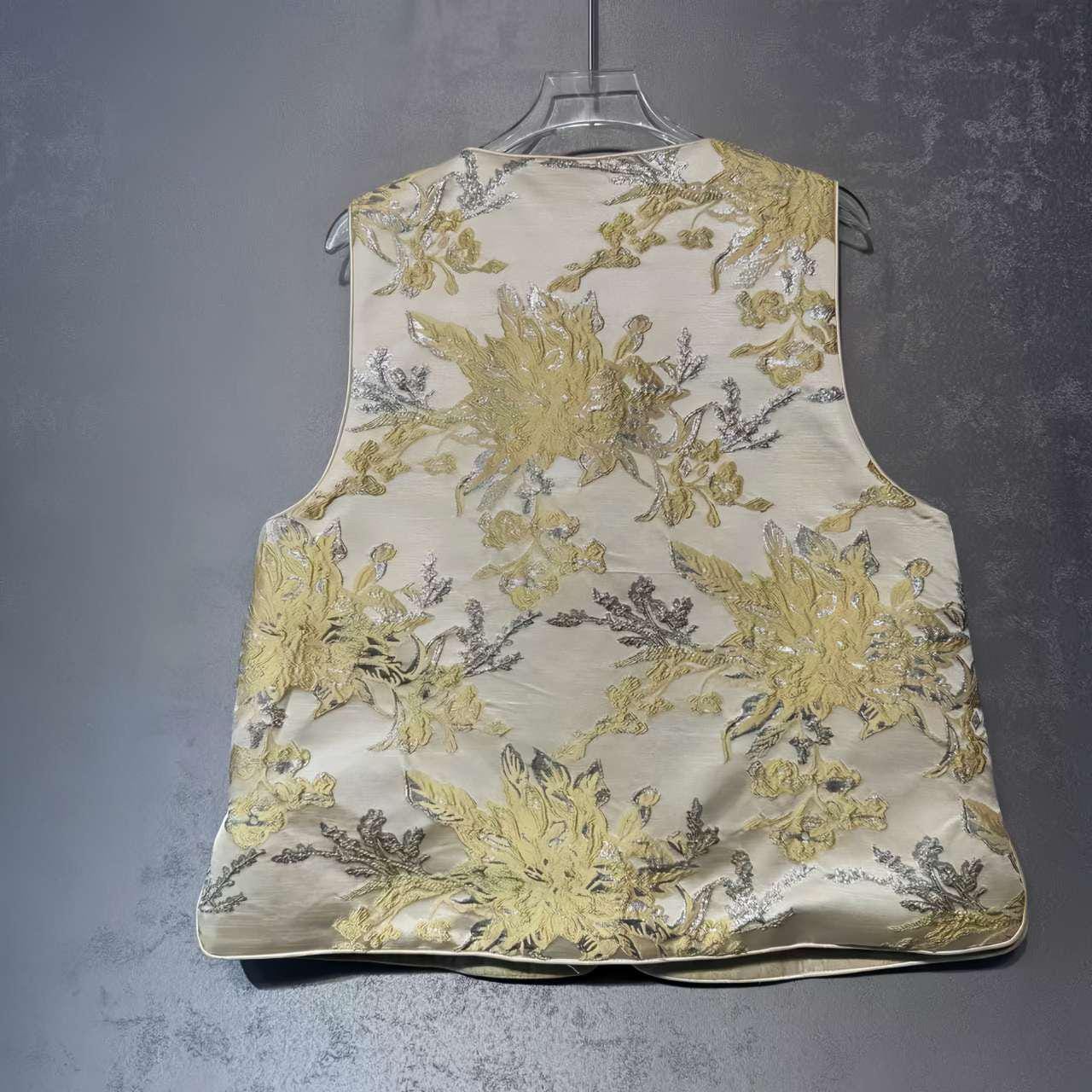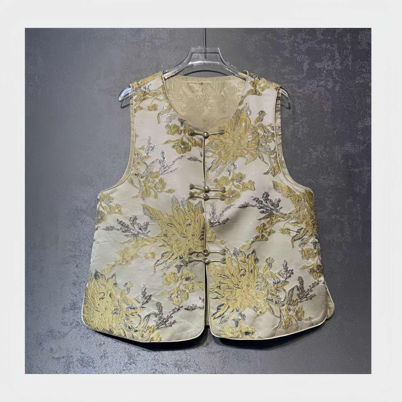 Gold Brocade Vest, Modern Hanfu Vest, New Style Vest, Spring Summer, Unique Gift for Her, Daily Work/Tea Ceremony