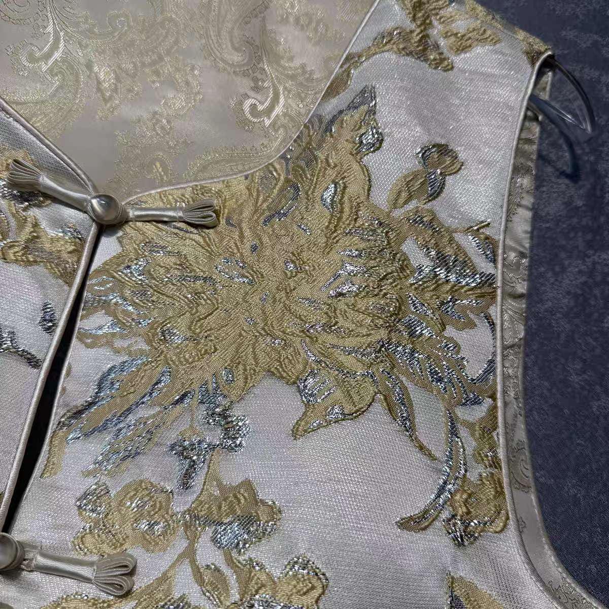 Elevate your style with this oriental-inspired floral vest, crafted from high-quality acetate silk for lightweight, breathable comfort, perfect for spring and summer. Its design features gold and silver embroidery with blooming peony motifs, a perfect fusion of traditional Chinese aesthetics and a modern fit.