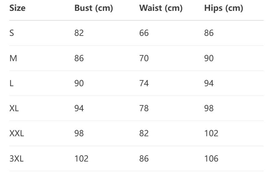 Size Guide: Be sure to check our size guide before ordering to find your perfect fit. If you have any questions, please contact us and we'll help you! 📏👗
