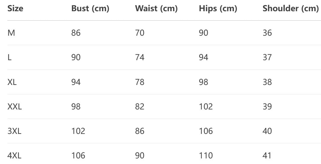 ⭐ Please refer to the size chart in the image to choose the correct size. It's best to choose sizes 3-4 cm larger than your actual body measurement. Feel free to contact us for help if you're unsure.