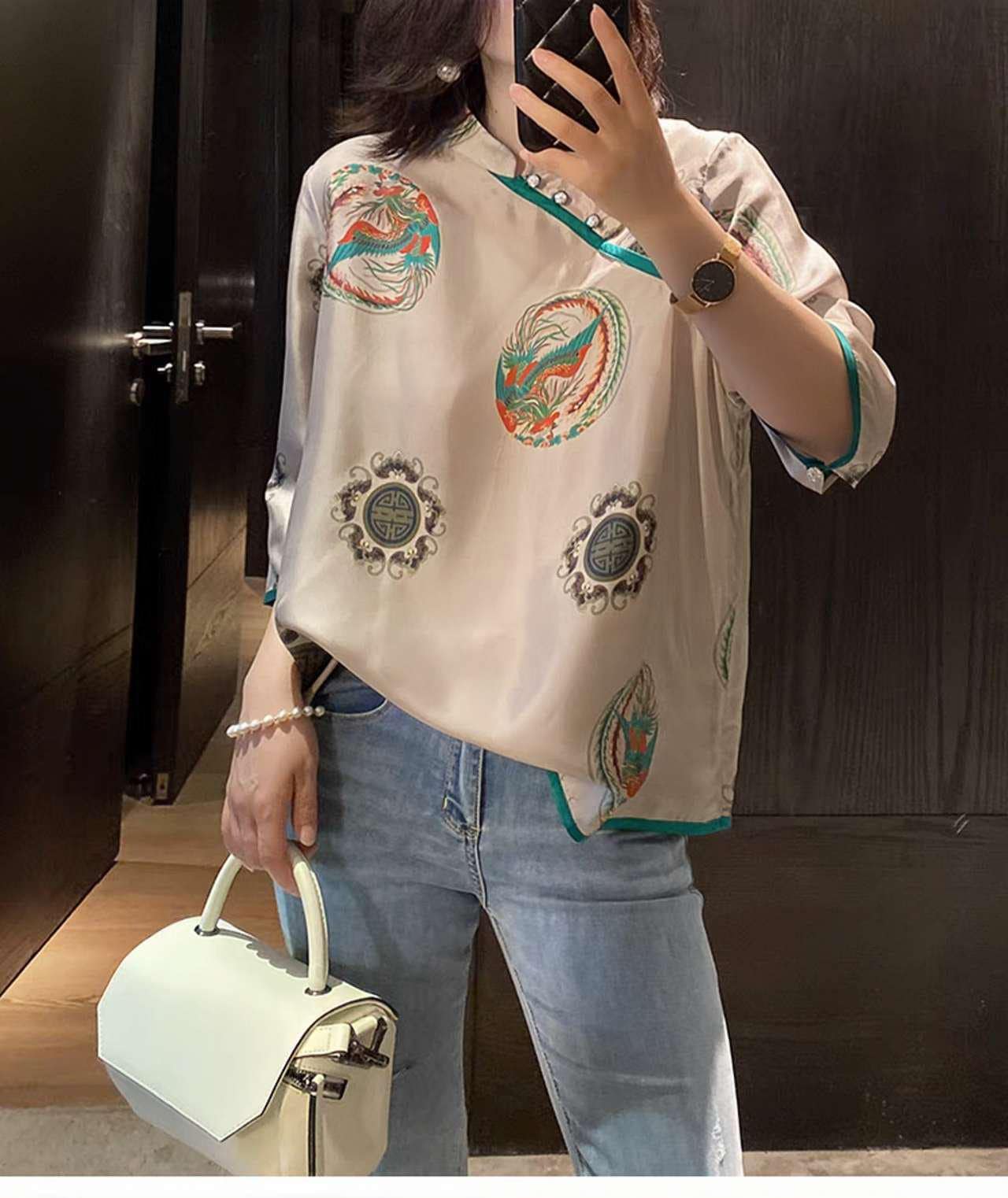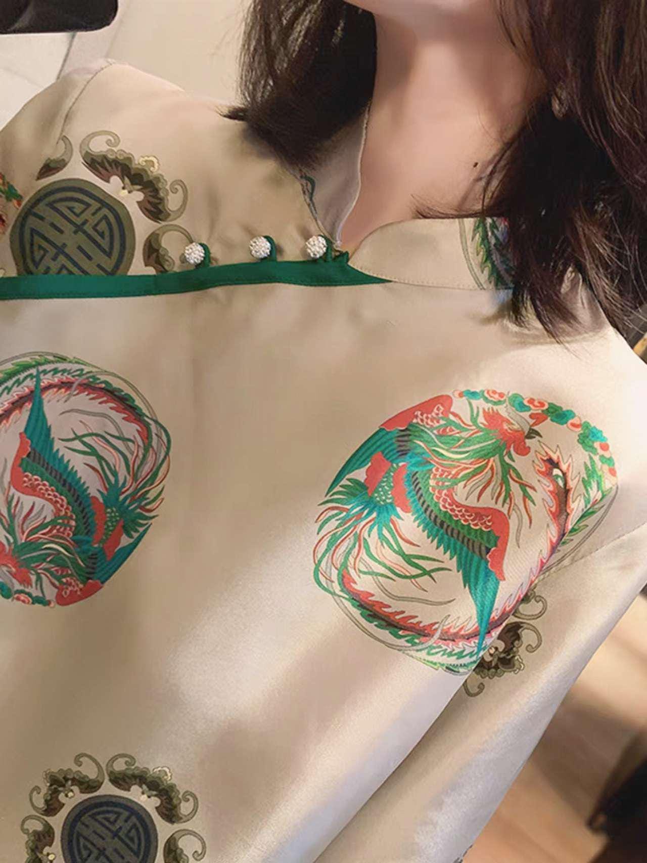 This exquisite natural silk blouse combines the timeless elegance of traditional Tang style with a modern, relaxed fit. The lightweight silk fabric is breathable, soft to the touch, and perfect for spring and summer. Ideal as a culturally meaningful gift for mothers, this garment offers comfort and sophistication in every detail.