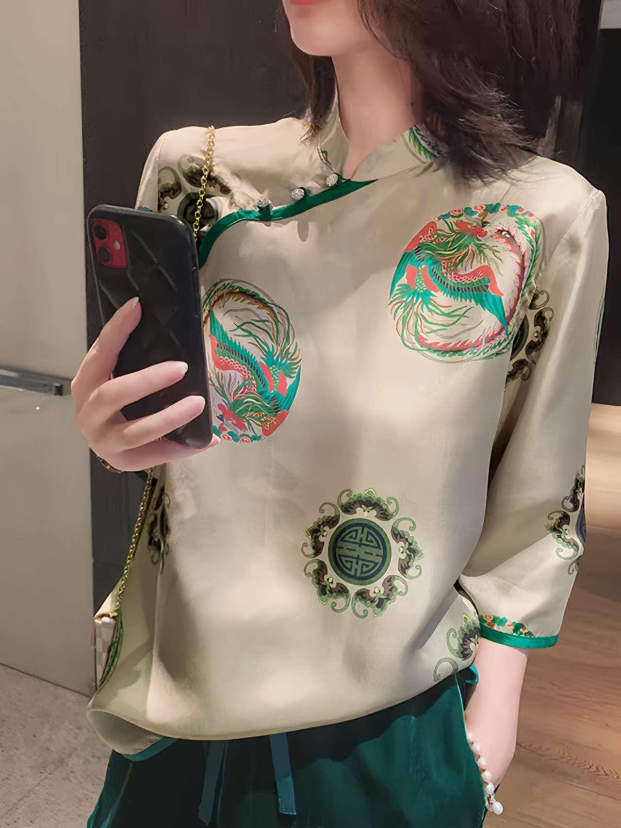 Retro Tang shirt, traditional silk blouse, cultural gift for mother, light luxury Chinese top, oriental vintage shirt, artistic clothing