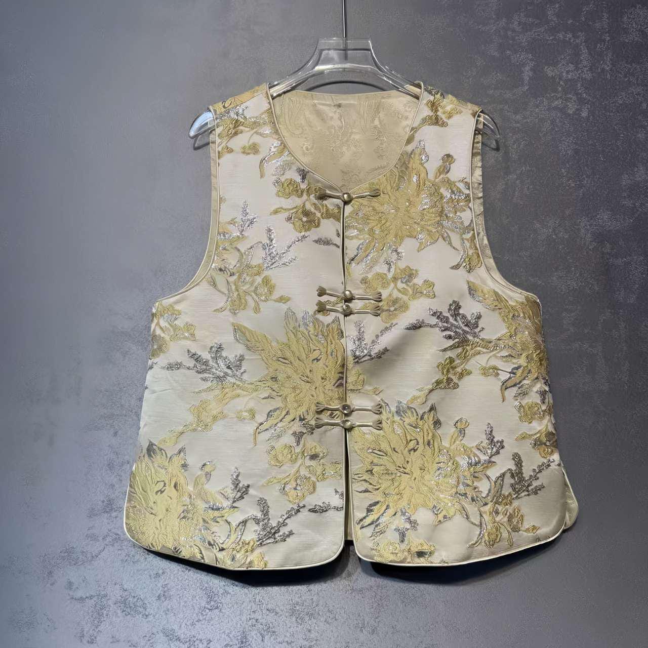 Gold Brocade Vest, Modern Hanfu Vest, New Style Vest, Spring Summer, Unique Gift for Her, Daily Work/Tea Ceremony