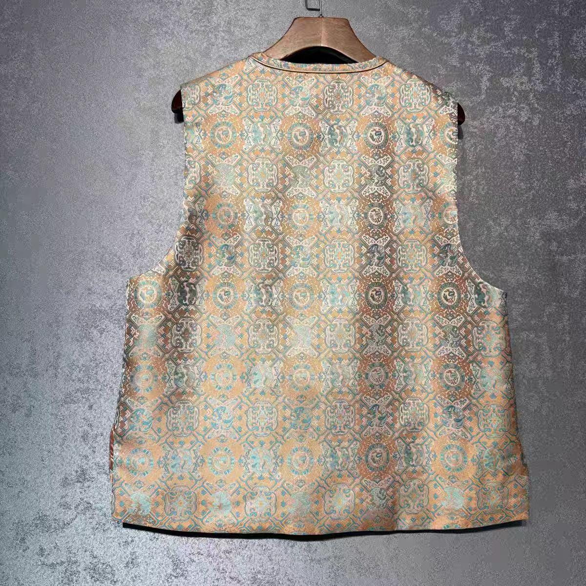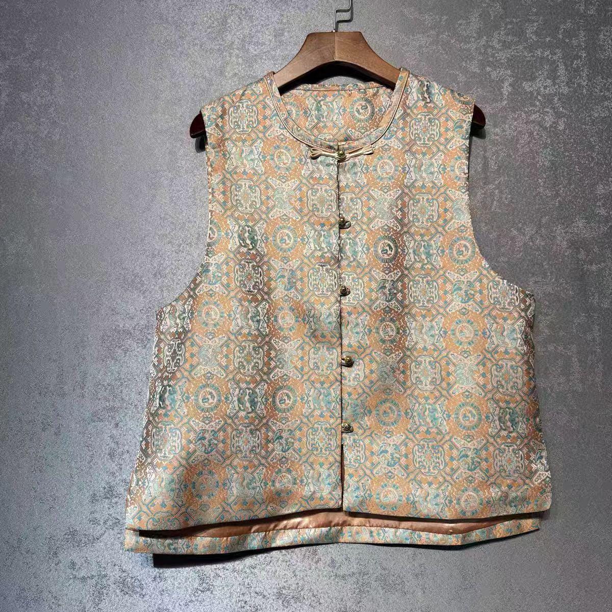 Show off timeless elegance with this Song brocade vest, a versatile garment that combines traditional Chinese craftsmanship with contemporary fashion.