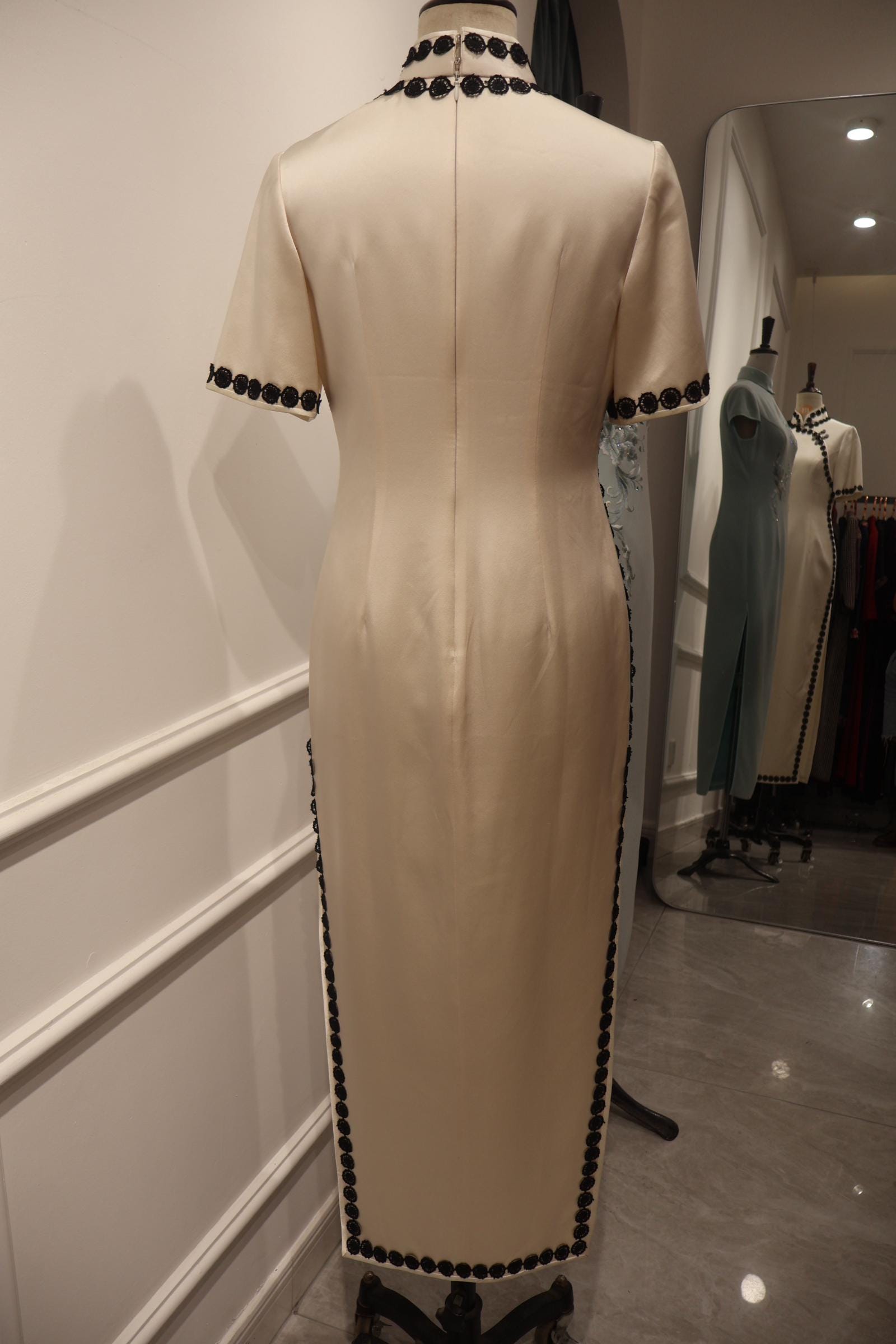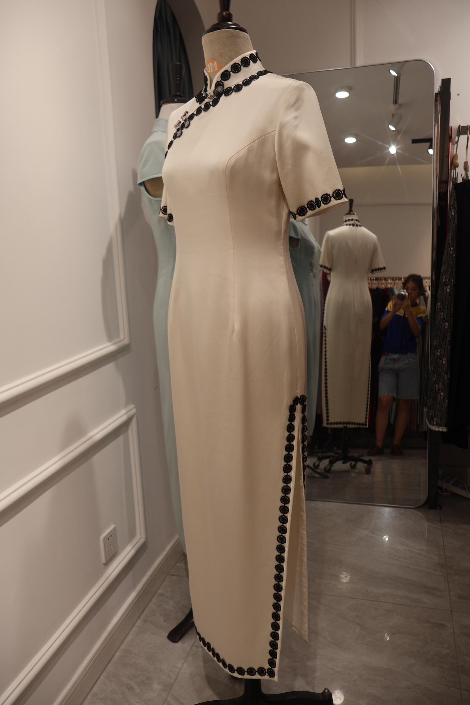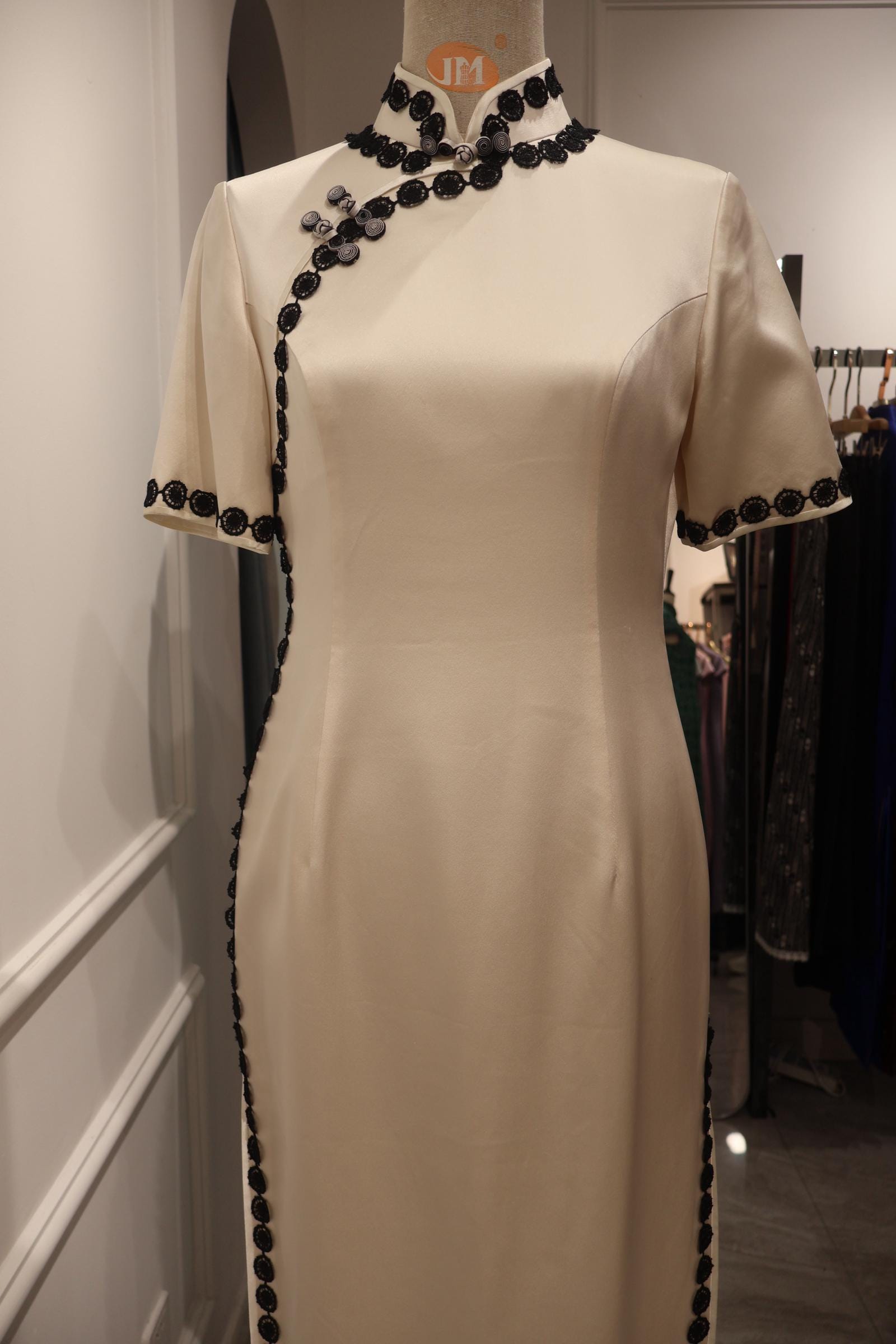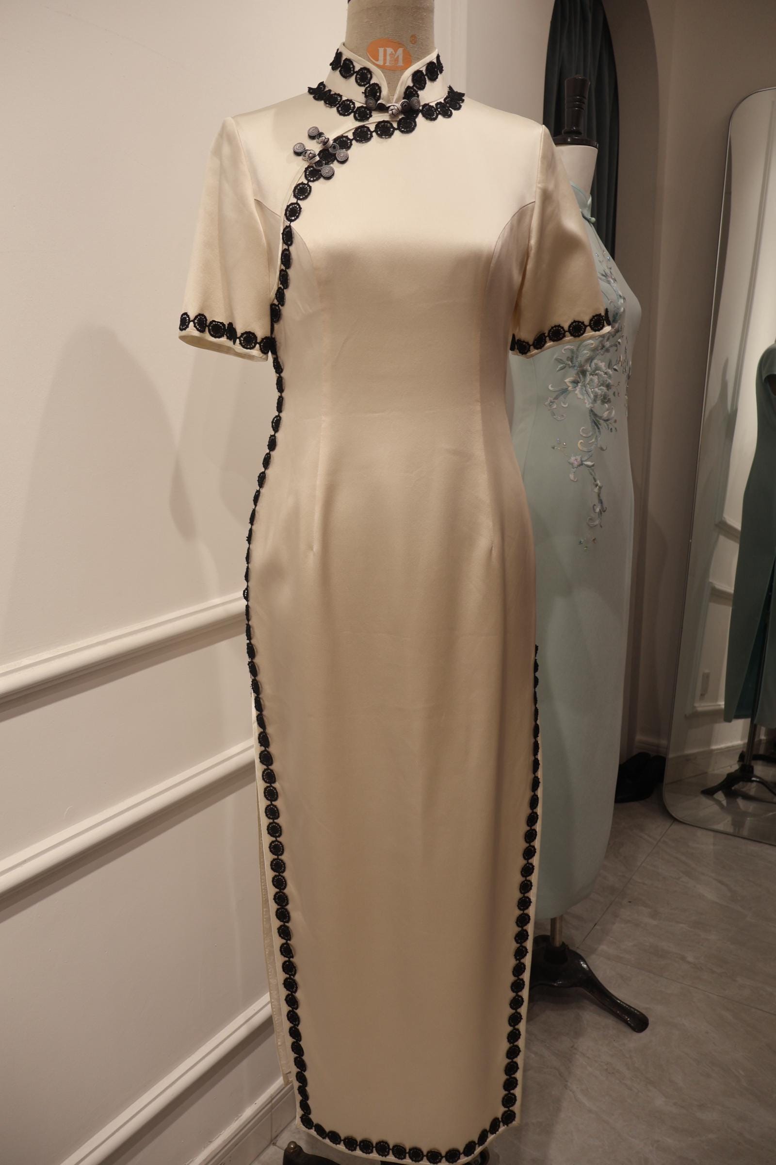 White cheongsam, custom-made Chinese silk dress, elegant Chinese wedding dress, luxury formal dress, high-end dress, vintage style