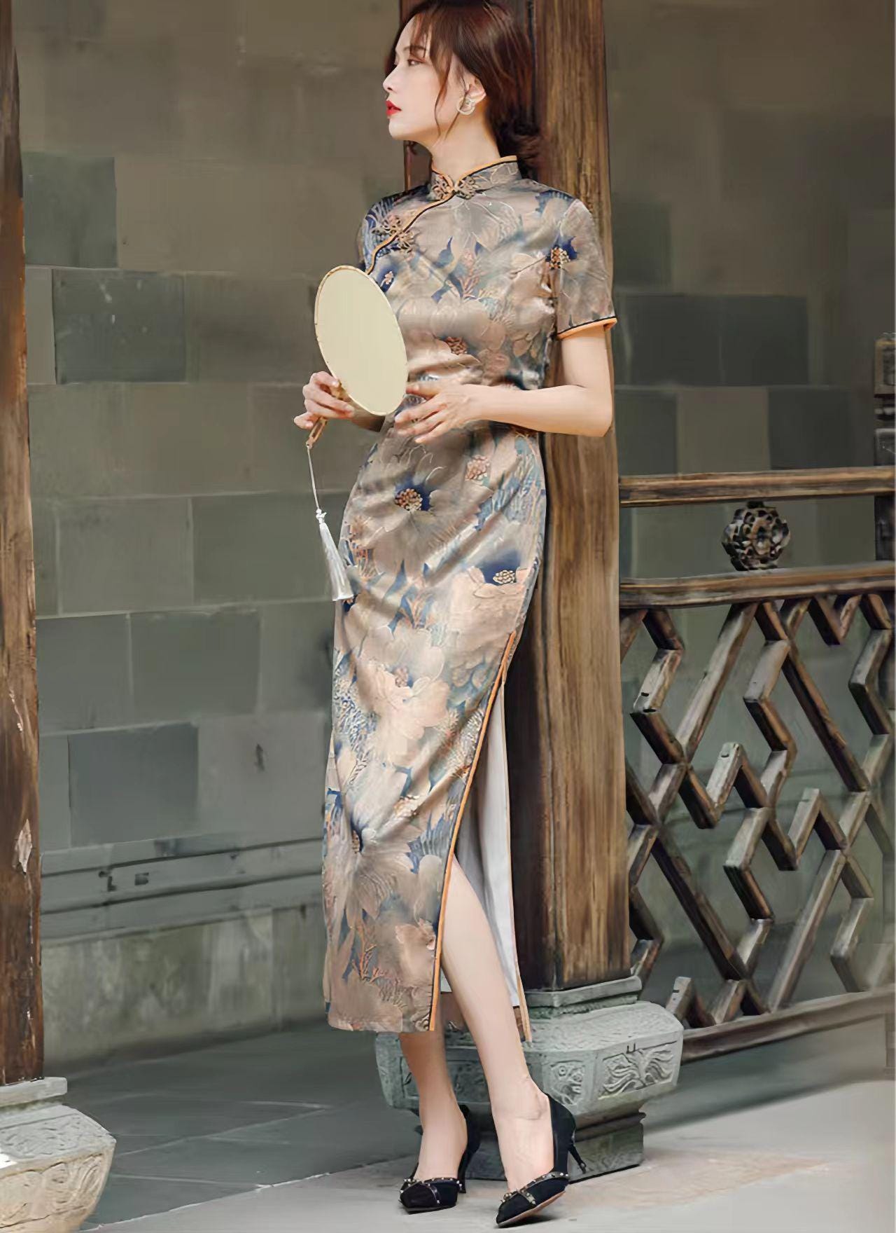 Vintage Silk Cheongsam, Qipao Dress for Tea Ceremony, Retro Chinese Evening Dress, Oriental Cocktail Dress, Gift for Her
