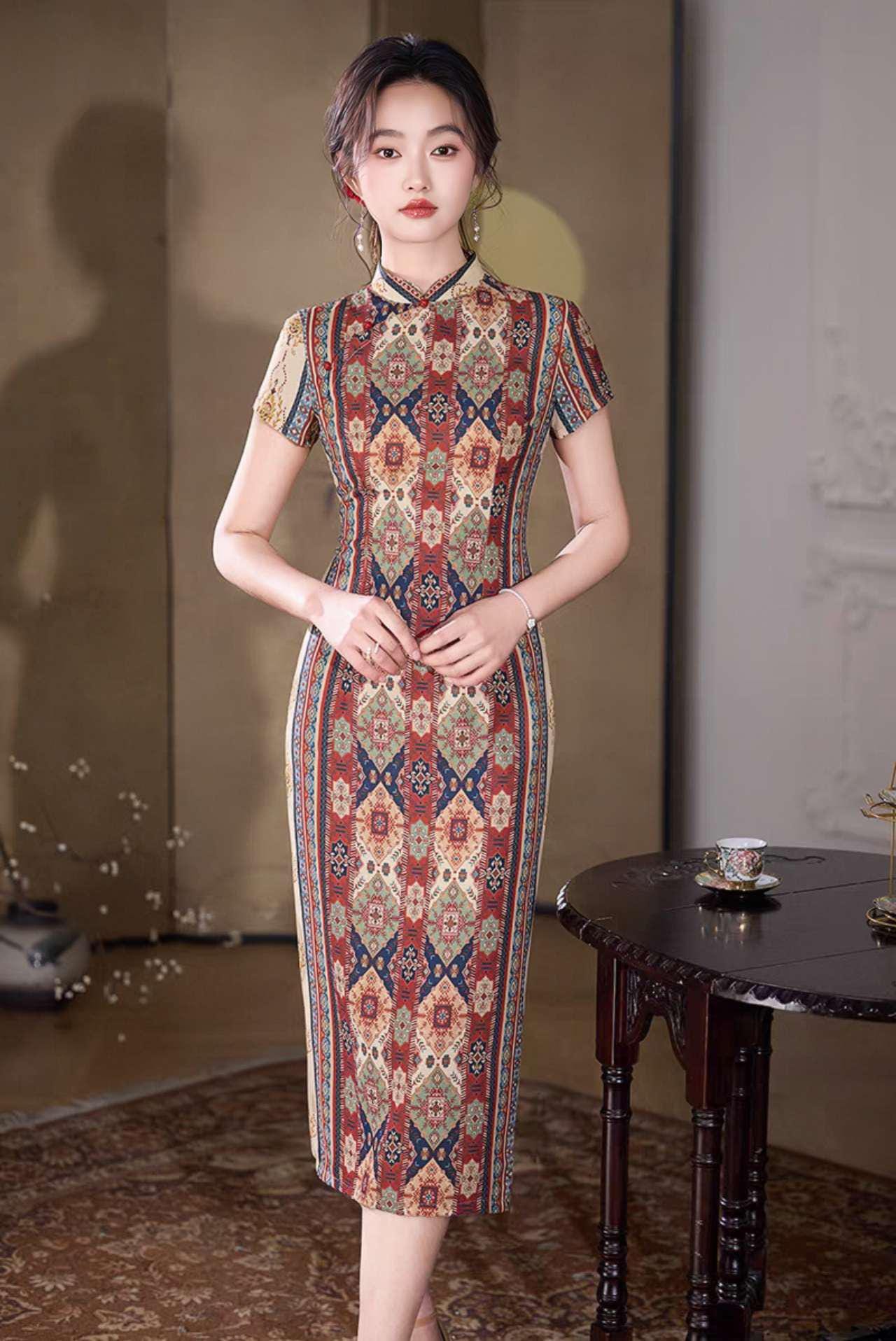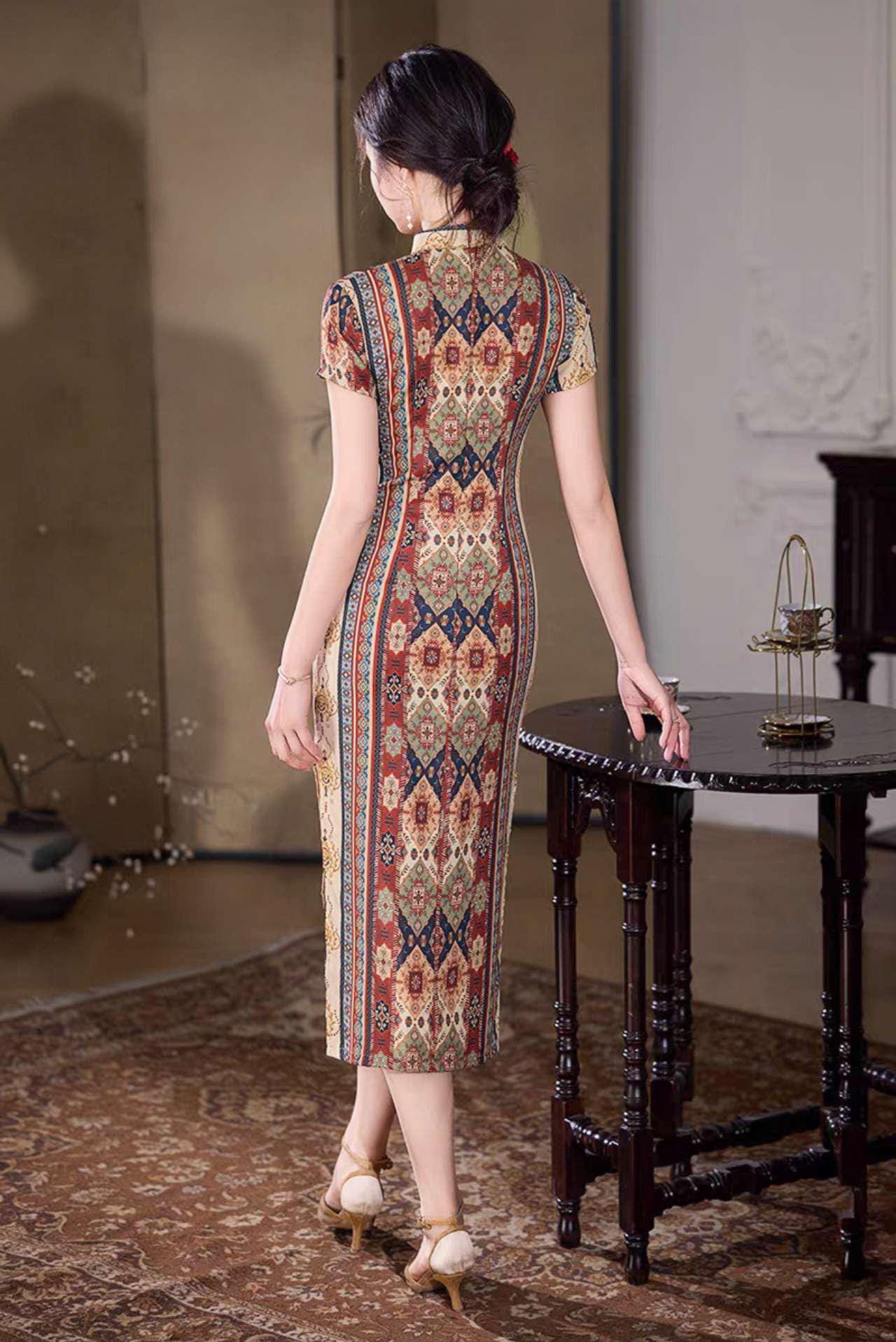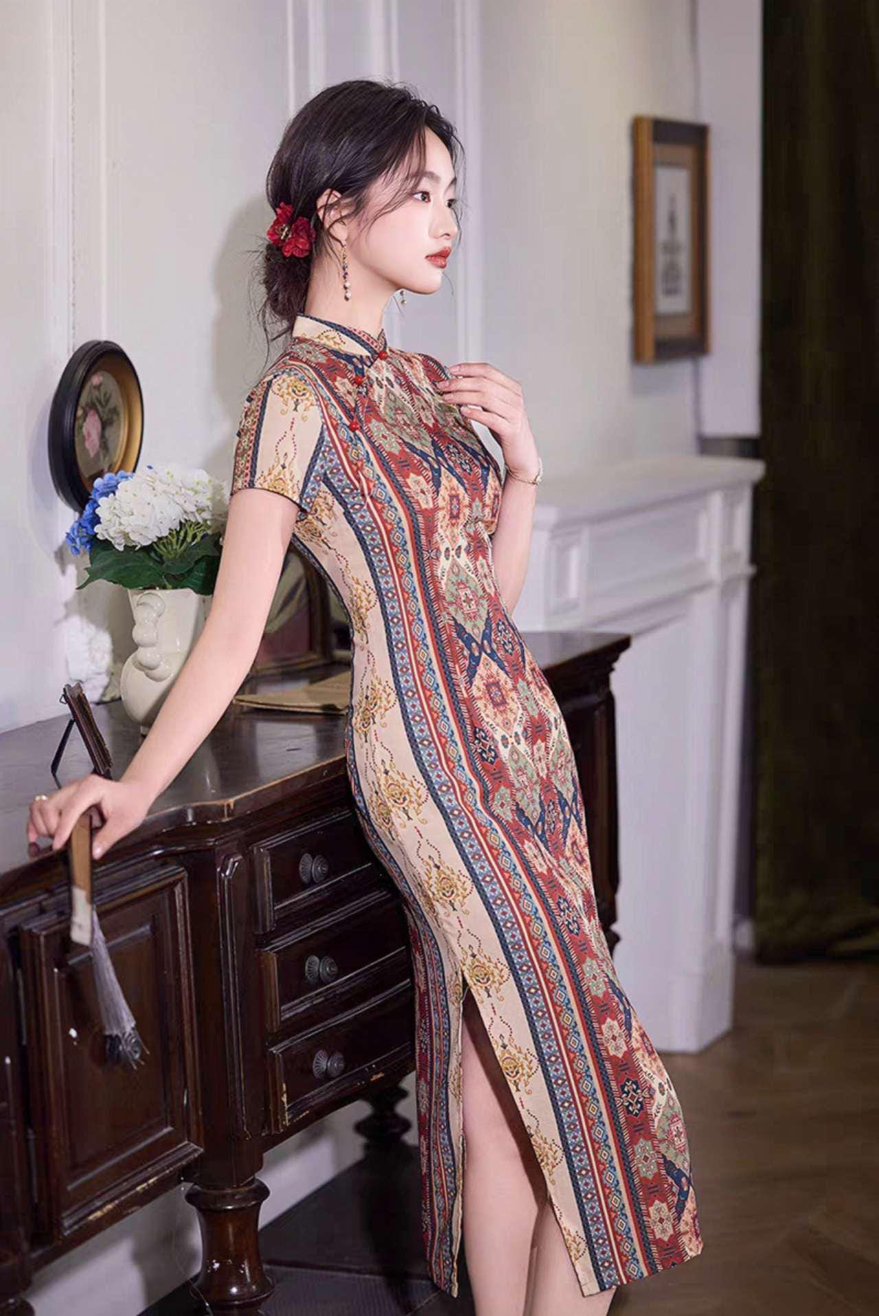 Women's Retro Cheongsam, Ethnic Chinese Dress, Bohemian Qipao Dress, Elegant Gift for Mom, Elegant Vintage Tea Dress