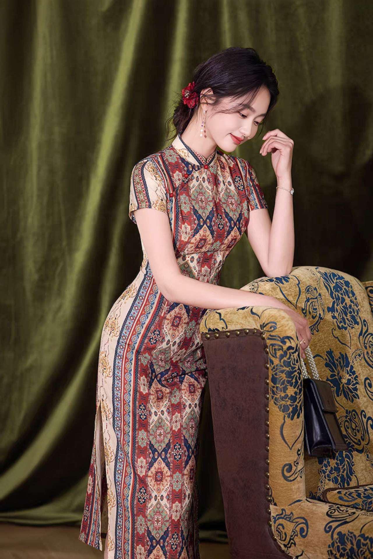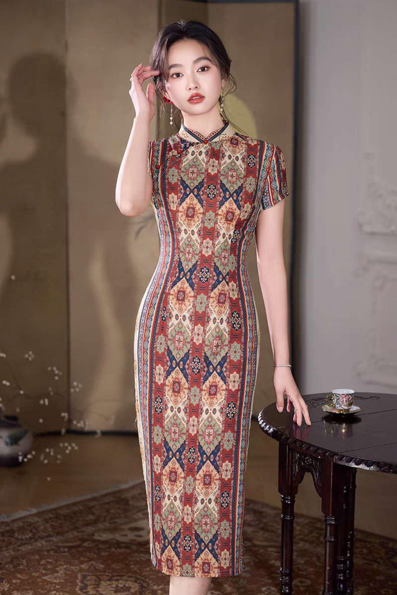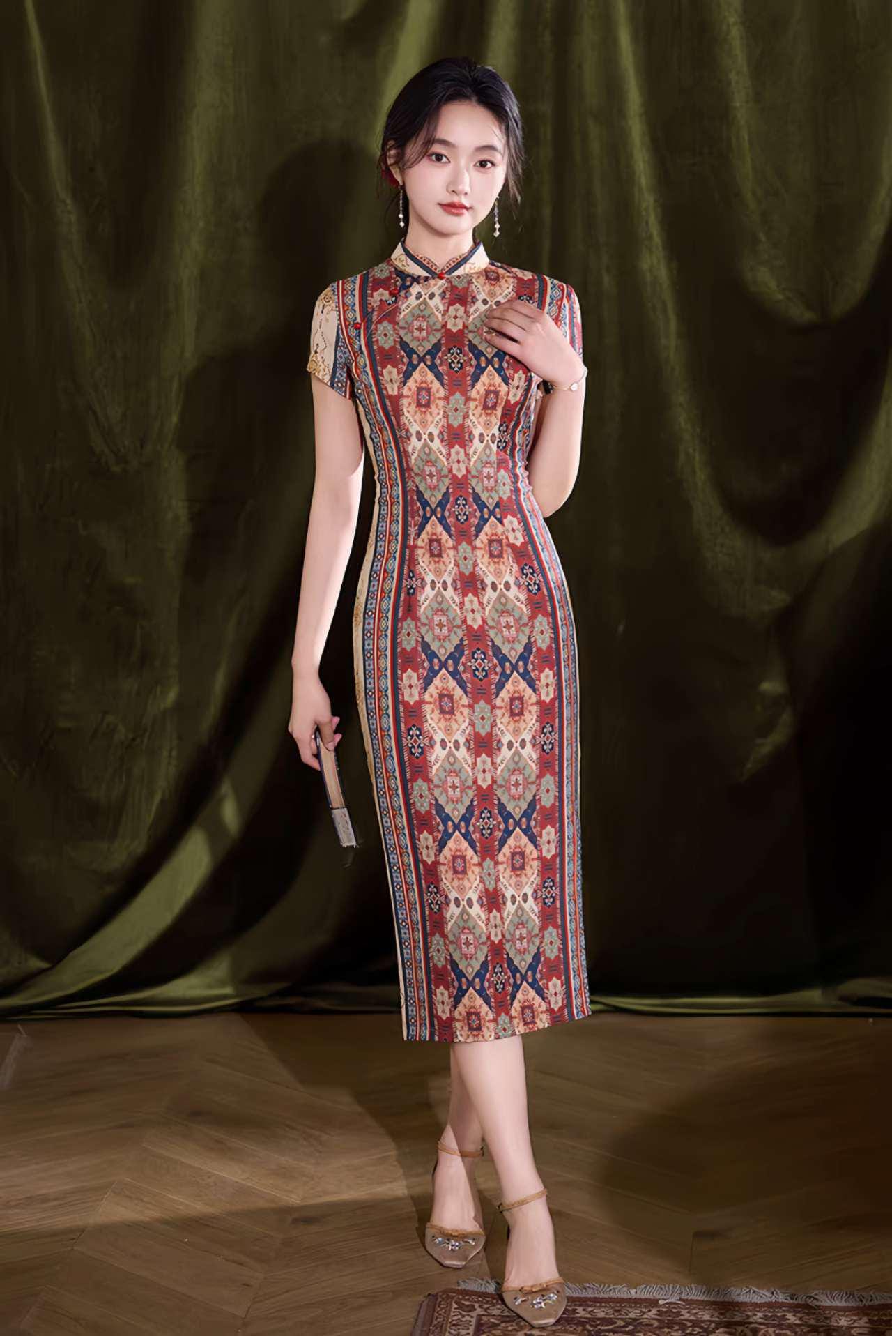 Women's Retro Cheongsam, Ethnic Chinese Dress, Bohemian Qipao Dress, Elegant Gift for Mom, Elegant Vintage Tea Dress