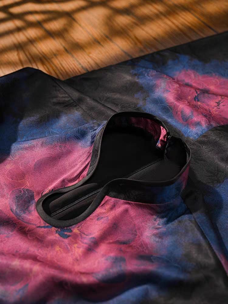 Discover oriental elegance with this vintage qipao dress with a teardrop collar, a piece that evokes classic Chinese femininity. The fabric mimics traditional Xiang Yun Sha silk, with a lightweight, soft finish thanks to its synthetic acetate blend.