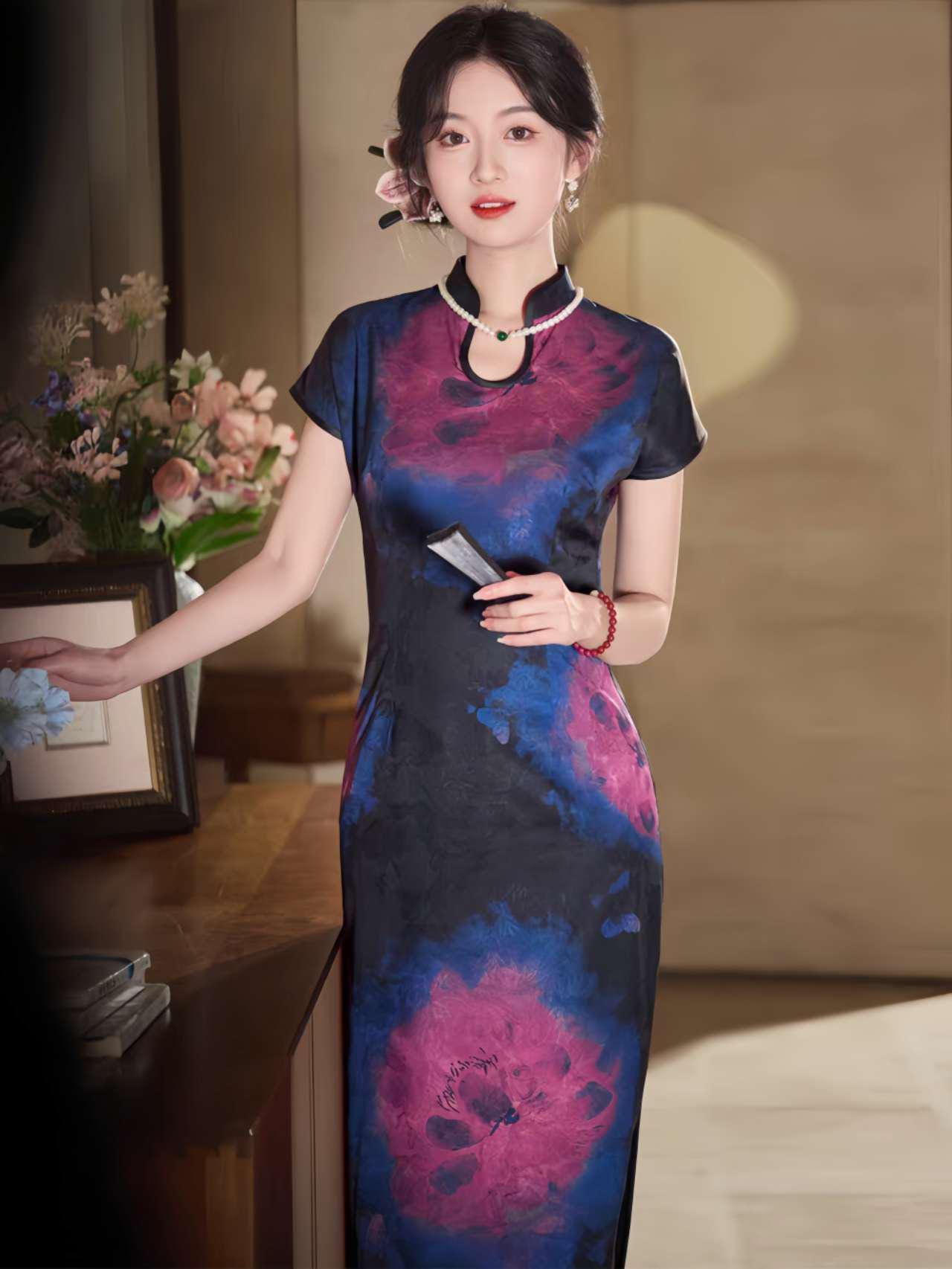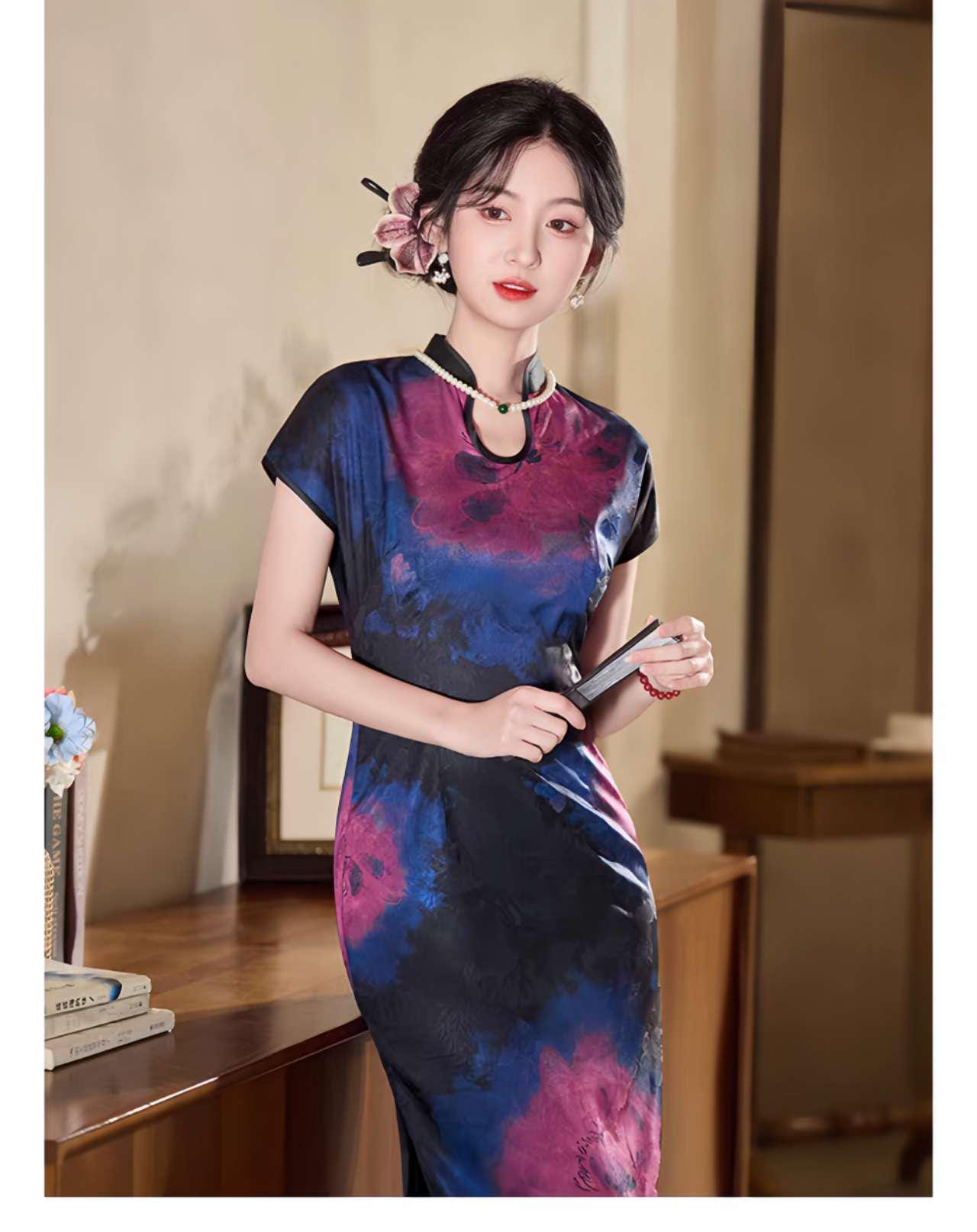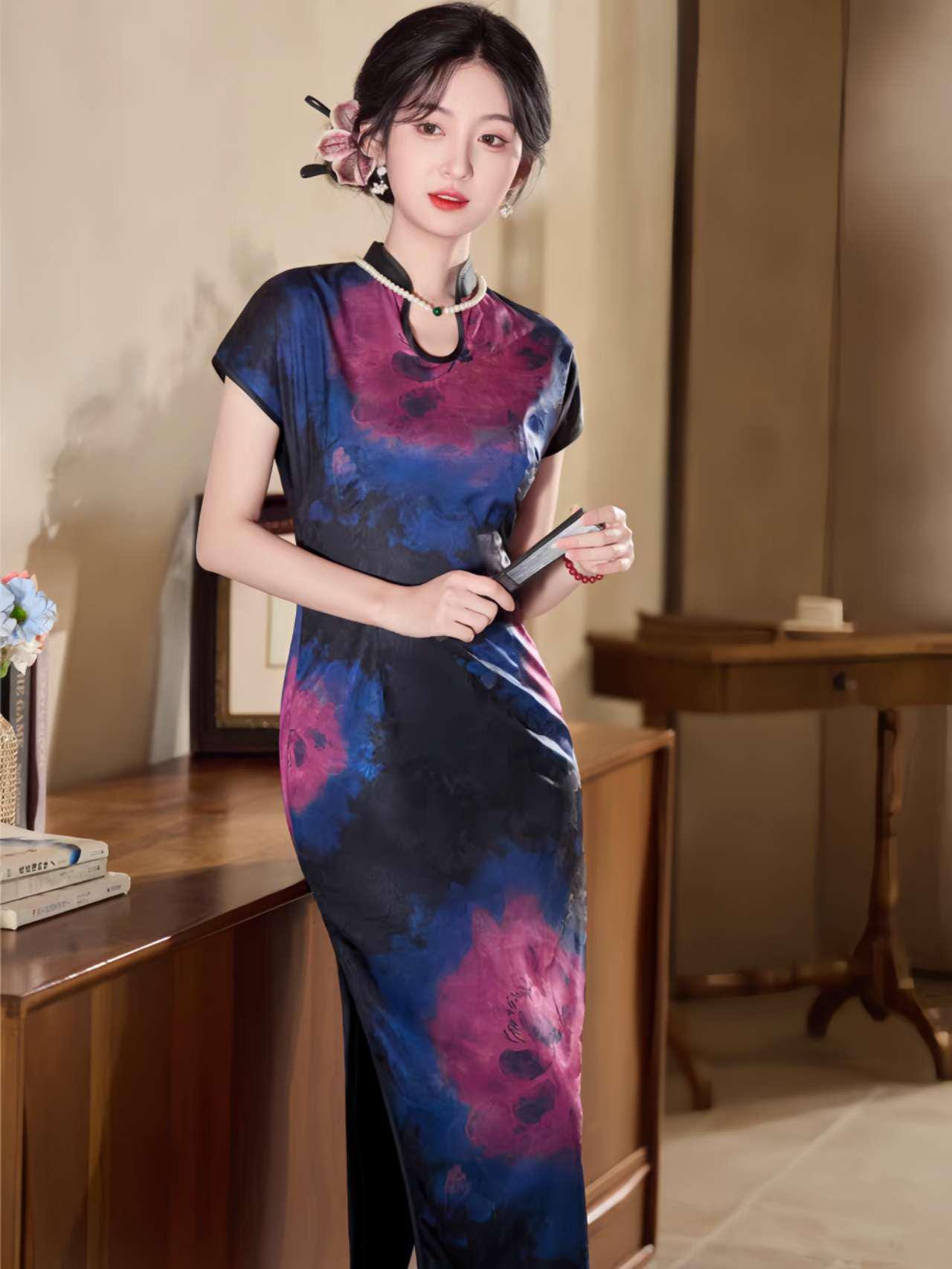 Water Drop Collar Qipao, Vintage Cheongsam, Soft Silk Look Qipao, Spring Summer Qipao, Traditional Chinese Dress