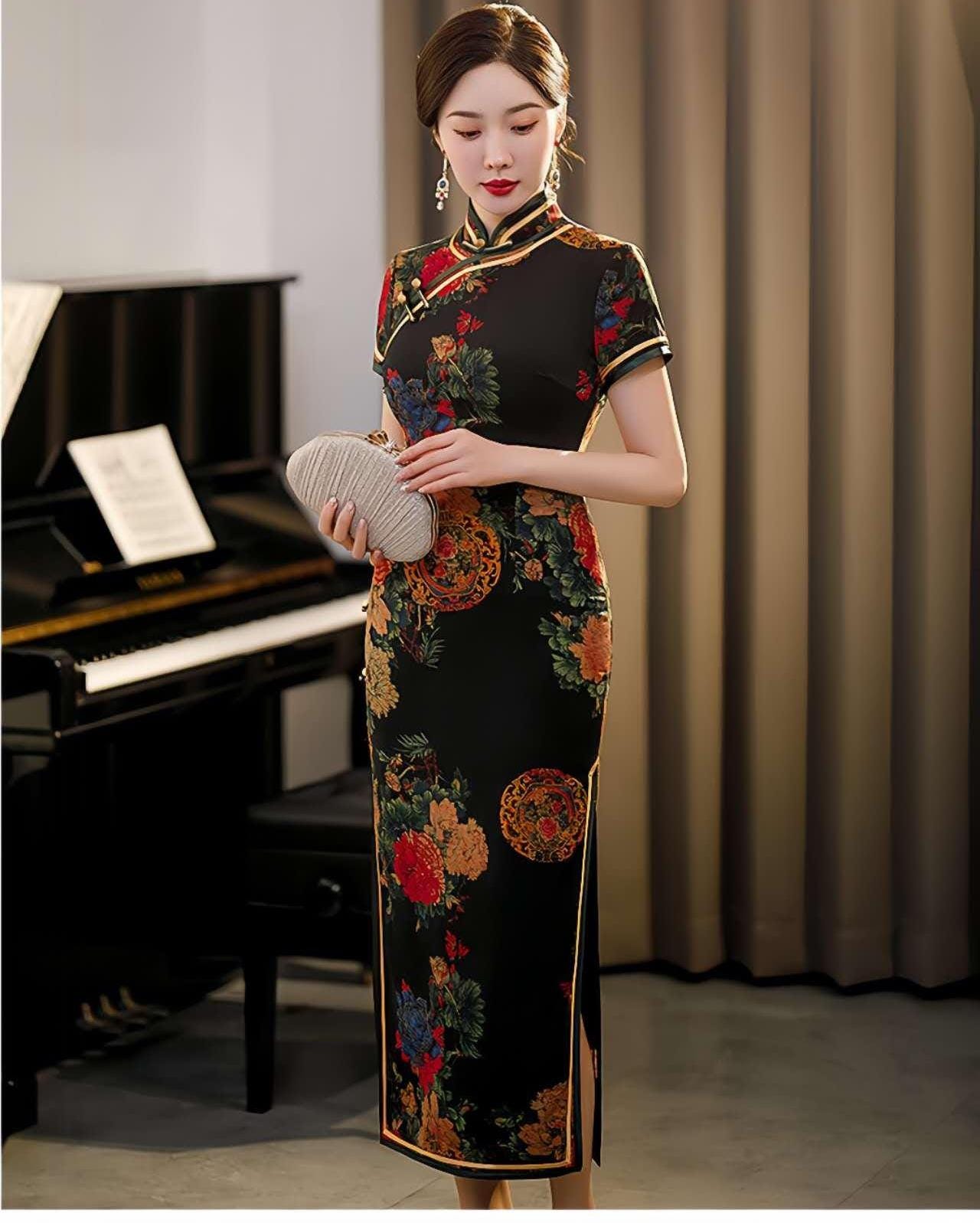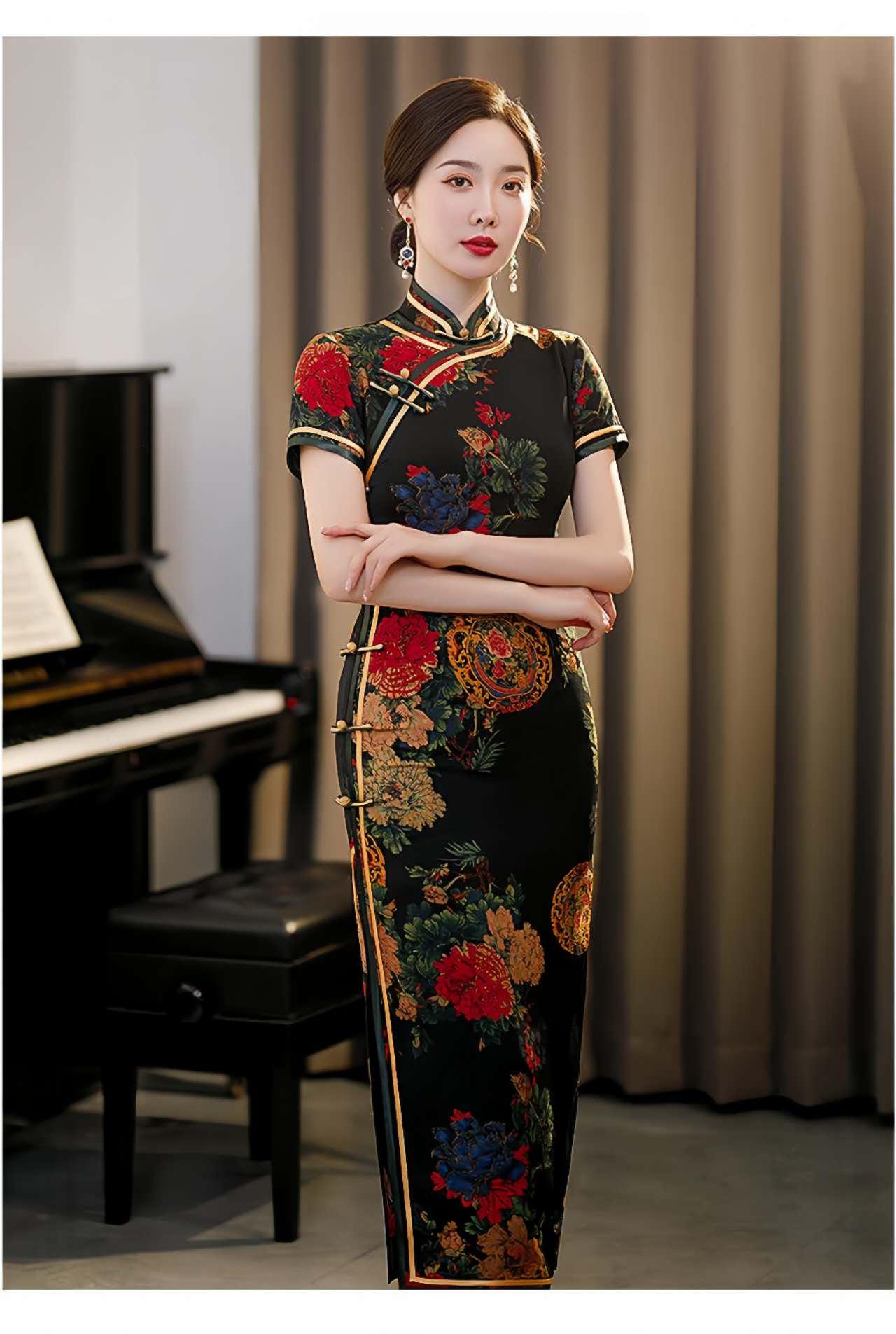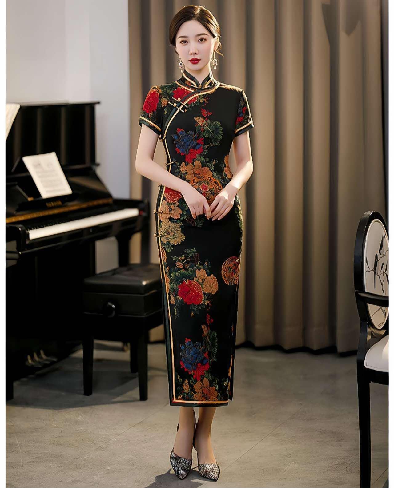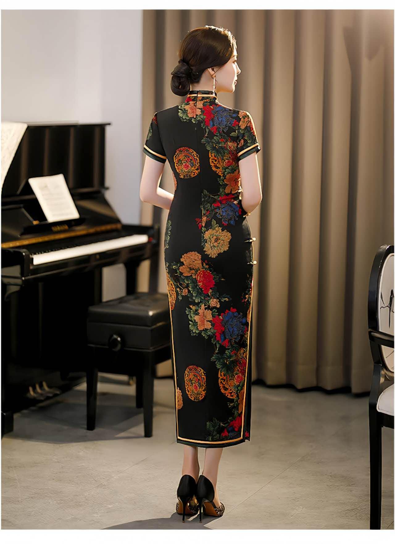 Elegant black qipao, vintage oriental dress, party cheongsam clothing, elegant vintage tea dress, elegant mother gift, retro, M-4XL