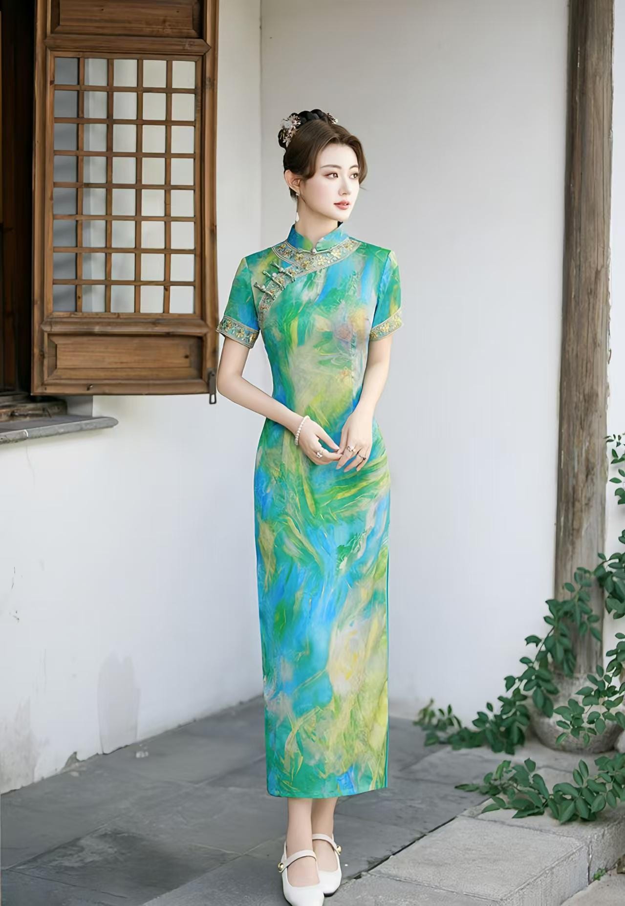 Minor Variations: Since each qipao is handmade, slight variations in the fabric patterns or colors may occur, making each piece unique. 🌿✨