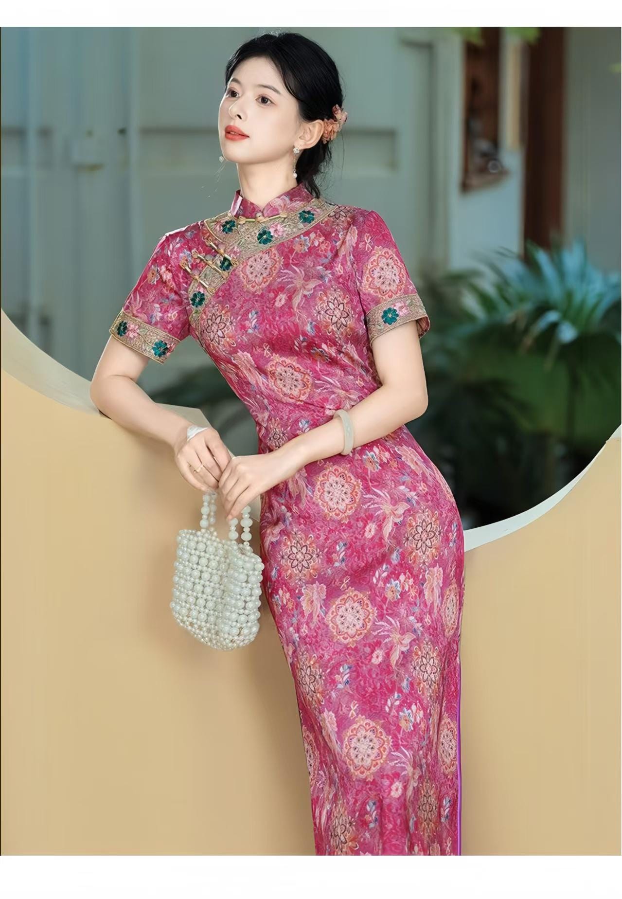 Style: Traditional Qipao / Cheongsam with ethnic elements