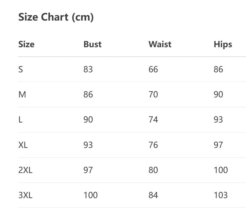 Size Guide: Be sure to check our size guide before ordering to find your perfect fit. If you have any questions, please contact us and we'll help you! 📏👗