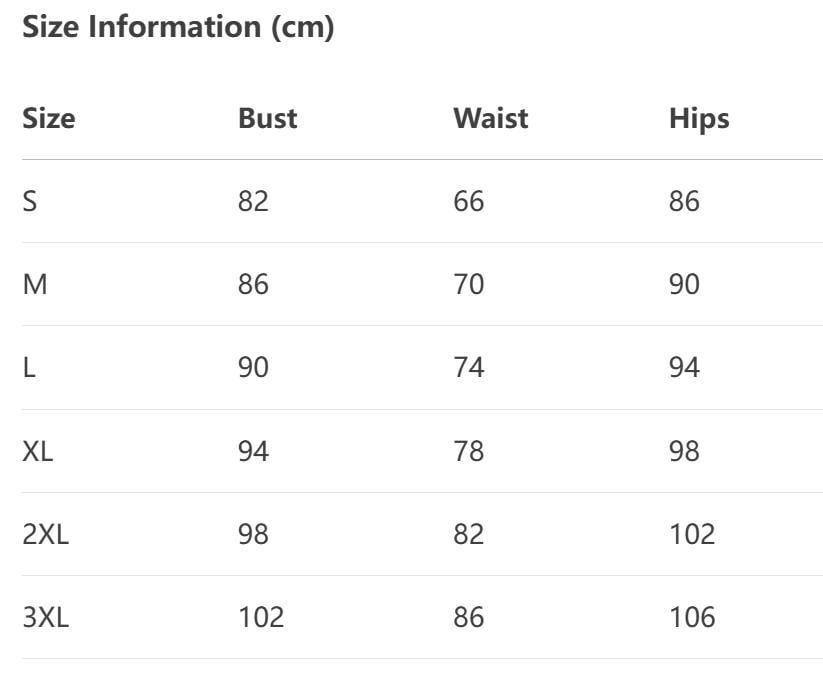 Size Guide: Be sure to check our size guide before ordering to find your perfect fit. If you have any questions, please contact us and we'll help you! 📏👗