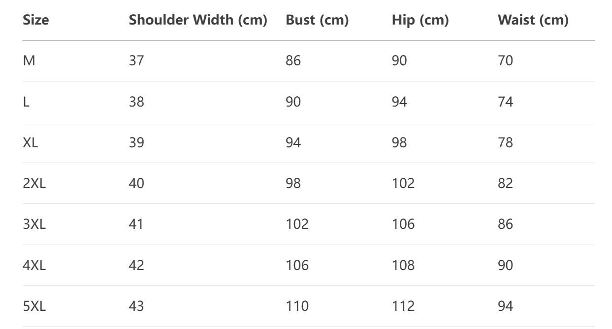 Available Sizes: Check our size chart to find your ideal fit.