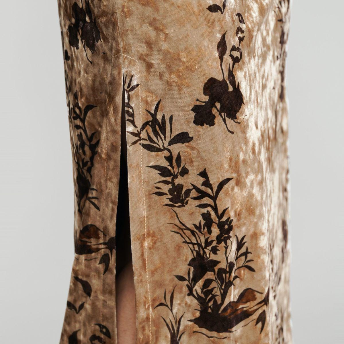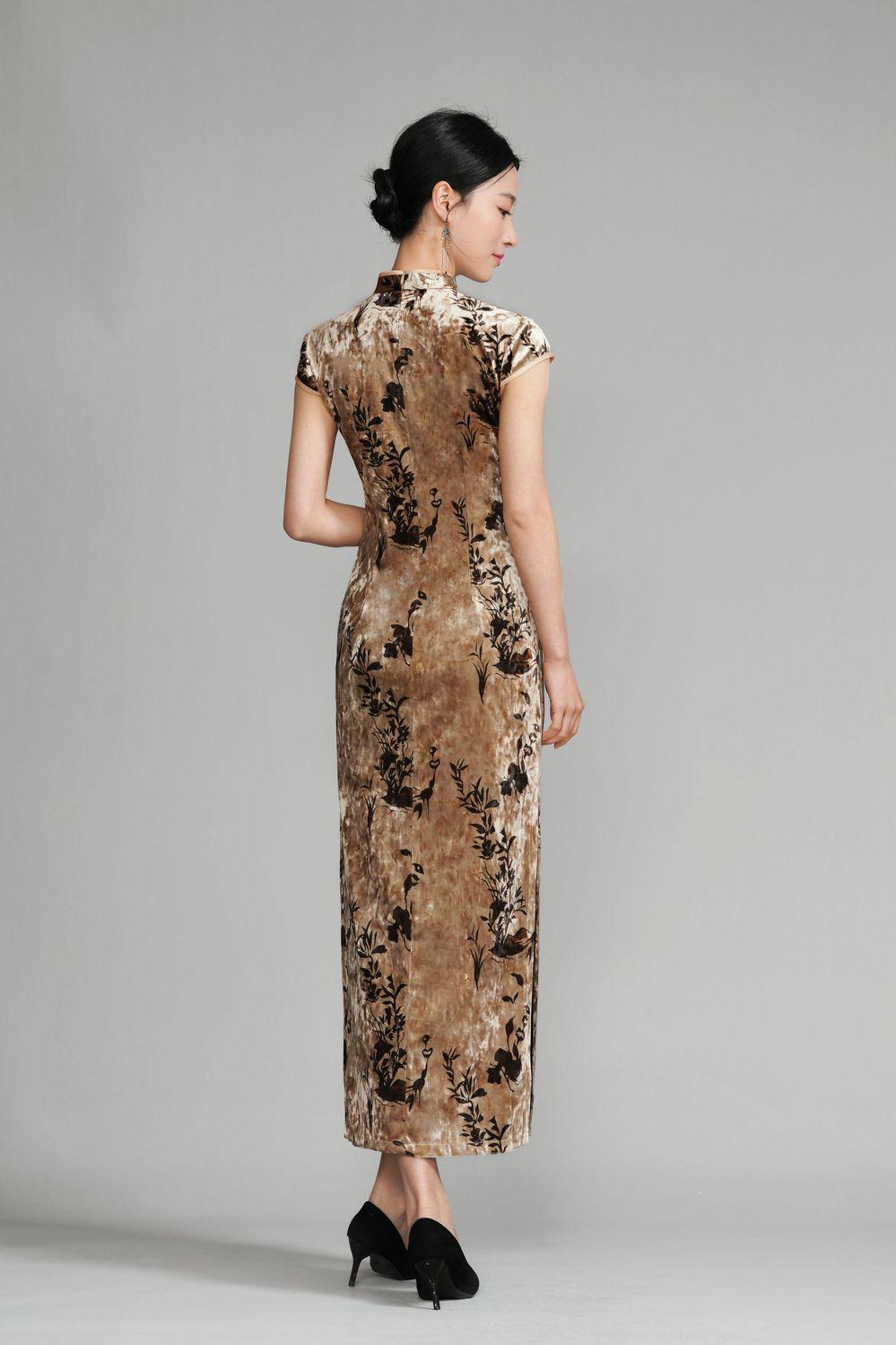 Champagne Gold Floral Qipao Dress | Women's Velvet Cheongsam | Elegant Chinese Dress | Traditional Evening Attire