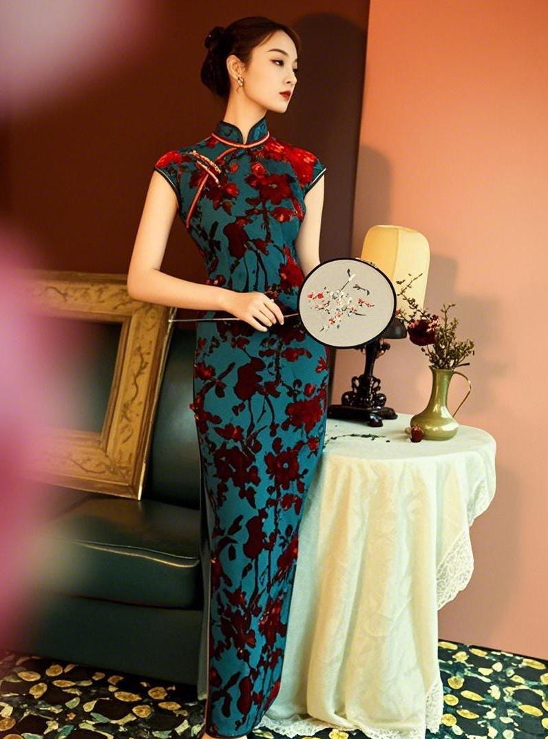 Elegant Long Qipao Dress | Traditional Cheongsam | Vintage Chinese Dress | Oriental Fashion | Party Dress with Slit