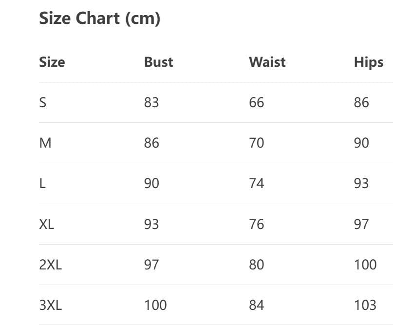 Size Guide: Be sure to check our size guide before ordering to find your perfect fit. If you have any questions, please contact us and we'll help you! 📏👗