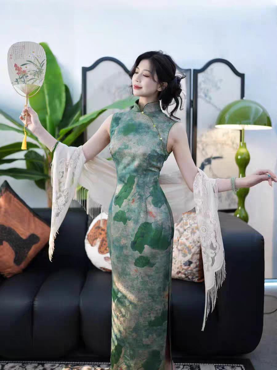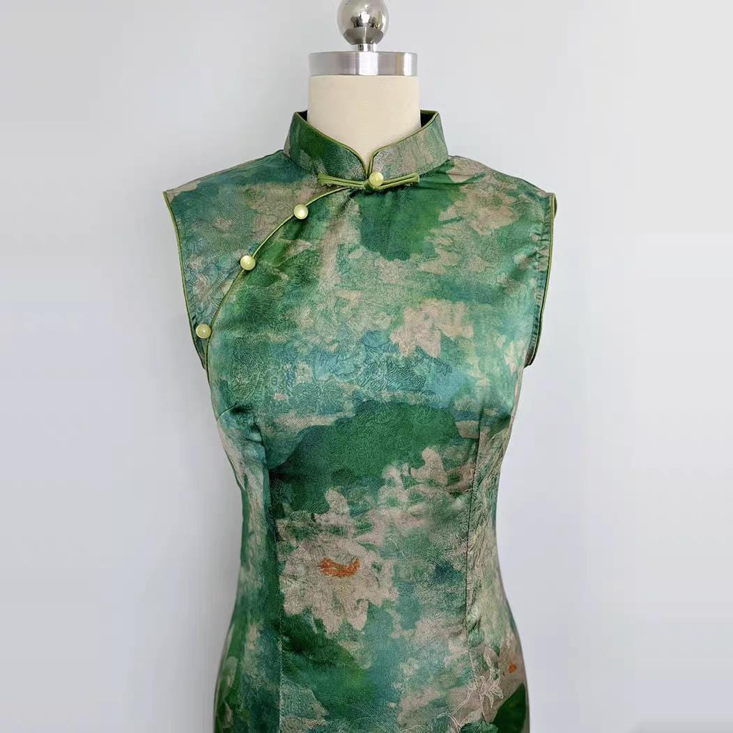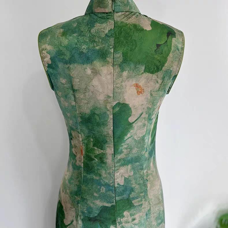 Inspired by the serenity of a lotus pond, this elegant summer qipao blends nature with tradition. The soft green tones and artistic lotus leaf design evoke a sense of freshness and inner peace. Perfect for tea ceremonies, photo shoots, or cultural events in summer.